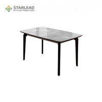 Meja makan elegan dengan tampilan modern dan material premium, tersedia dalam dua pilihan warna: Carrara White (CZ03001) dan Calacatta Grey (CZ03002)