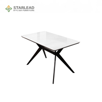 Meja makan berdesain minimalis modern dengan permukaan mewah dan daya tahan tinggi.